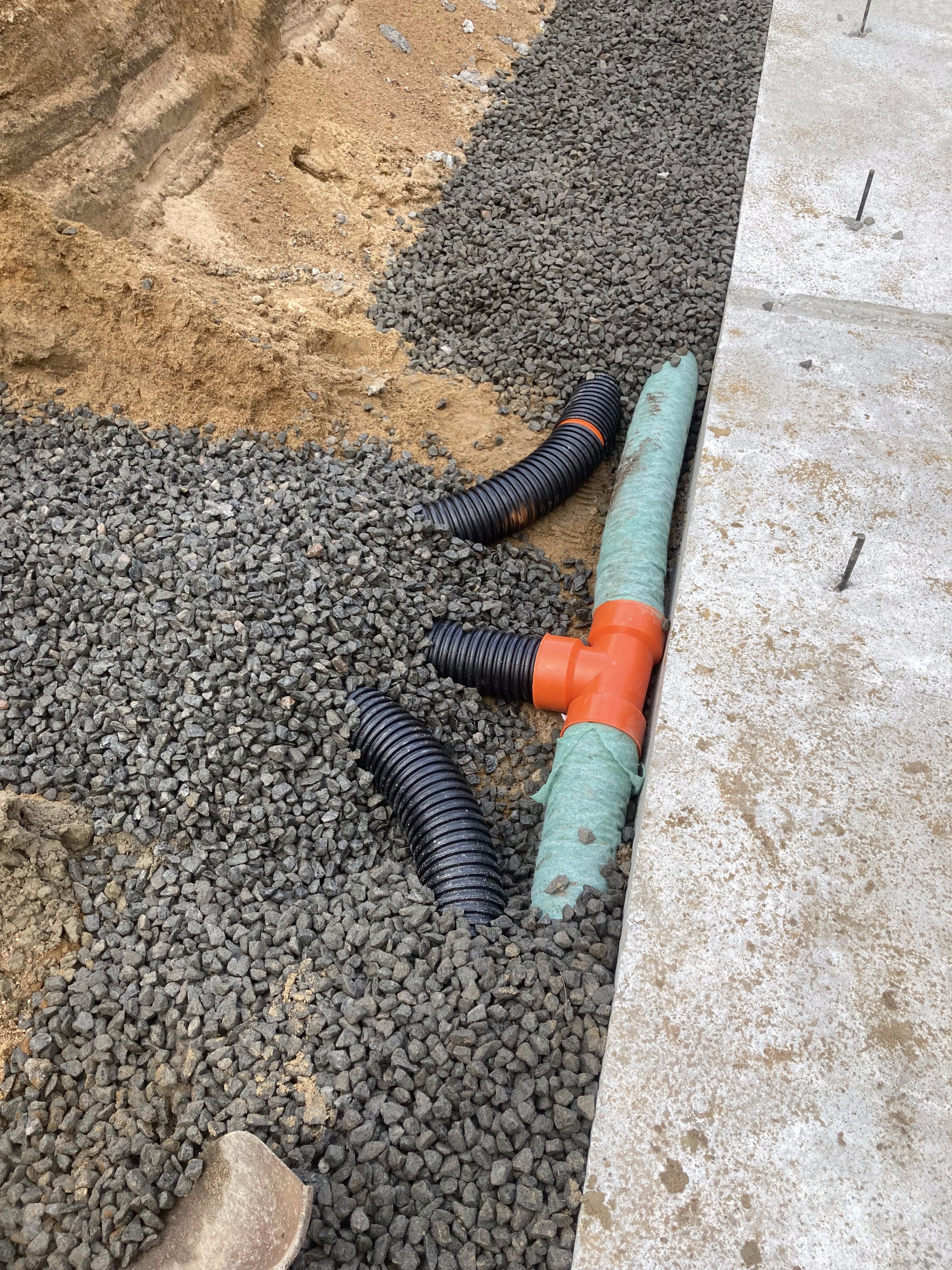 L’installation d’un système de drainage des gouttières est une autre étape cruciale dans la gestion des eaux pluviales. Le meilleur moment pour planifier et installer ce système de drainage est avant de remblayer votre fondation. Un tuyau plein de 4 po est placé autour de la fondation, avec un tuyau supplémentaire qui s’étend au-dessus du niveau du sol à chaque futur tuyau de descente pluviale. Les tuyaux de descente descendantes s’écoulent dans la tuyauterie, qui draine l’eau de pluie vers la lumière du jour ou vers un puits sec. L’eau qui coule directement du toit peut s’accumuler autour de la maison, et le drainage de gouttière l’empêche.